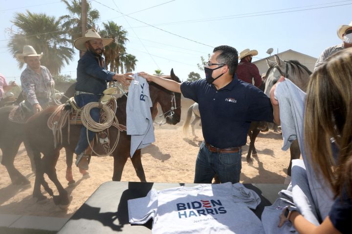 Edgar Flores, who is running for re-election in Assembly District 28, kicked off a campaign literature drop Saturday morning with many supporters on horseback.