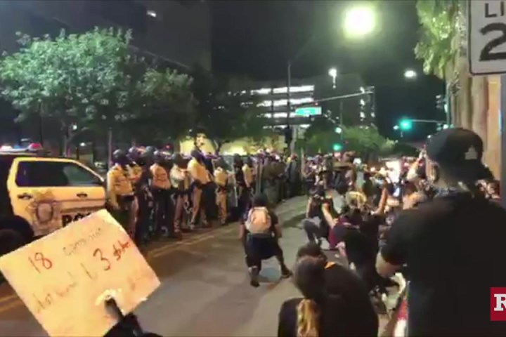 Las Vegas police used tear gas and nonlethal rounds to break up a protest on the Strip shortly before 9 p.m. Sunday.