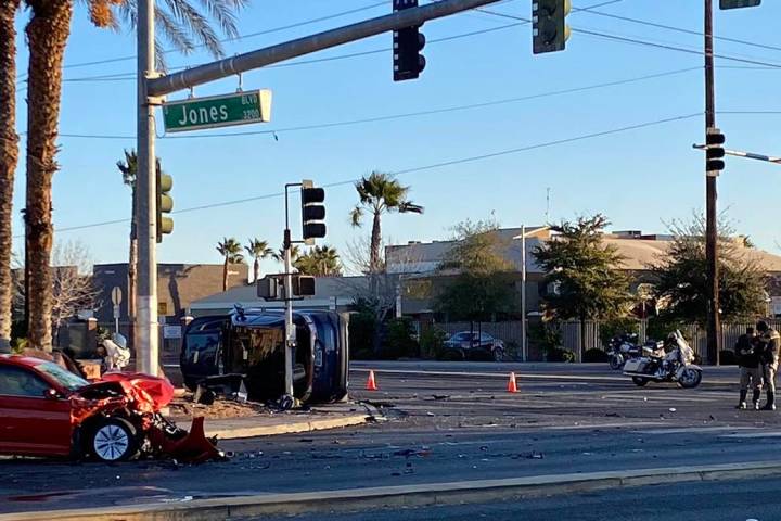 The fatal two-vehicle crash Monday morning closed several blocks of Rainbow Boulevard near Sahara Avenue in Las Vegas.