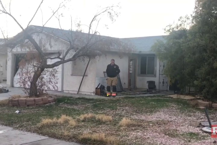Two people were injured in a fast-moving fire at a vacant home in central Las Vegas early Thursday.