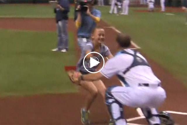 ST. PETERSBURG, Fla. — A Tampa Bay area girl throwing the first pitch at a Rays game got a big surprise from her father, who had been stationed in Afghanistan for the past two years.