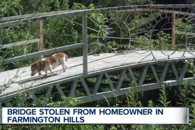 WXYZ-TV reports that Robert Cortis filed a police report Wednesday saying the 40-foot bridge is made of steel and wood, and that it was stolen from his property in Farmington Hills.