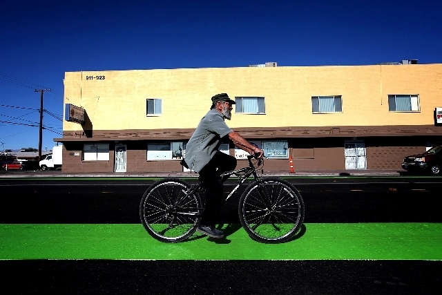 He said Sahara Avenue is a model street for biking because it has a full-sized, clearly-marked bike and bus lane and is smooth sailing the whole way.
