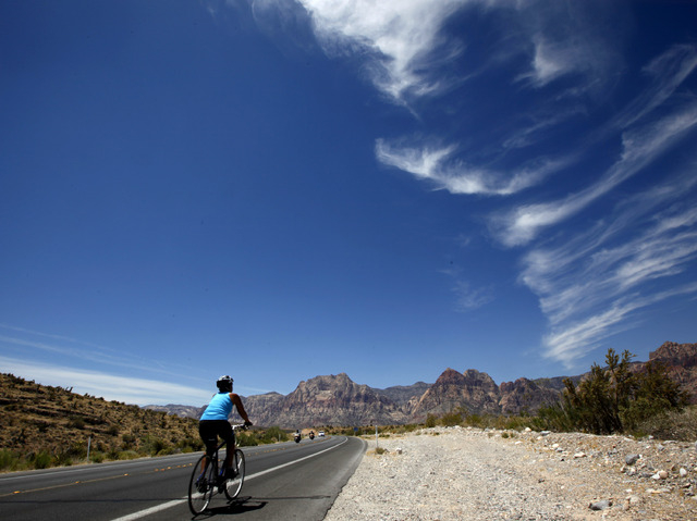 Many Las Vegas roads, including popular streets like Charleston Boulevard, which runs east-west across the valley, don’t have marked bike lanes for much of their route. This forces cyclists to squeeze against the side of the lane and the sidewalk, which can be dangerous.