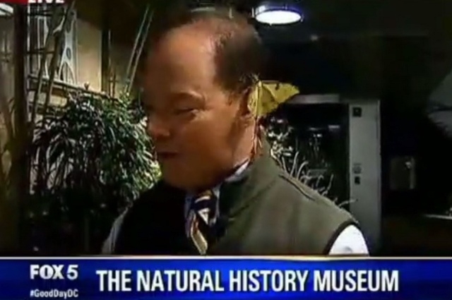 During a live shot from the Smithsonian’s National Museum of Natural History in Washington, D.C., the large moth laid two eggs in Bernard’s ear, according to Fox 5.