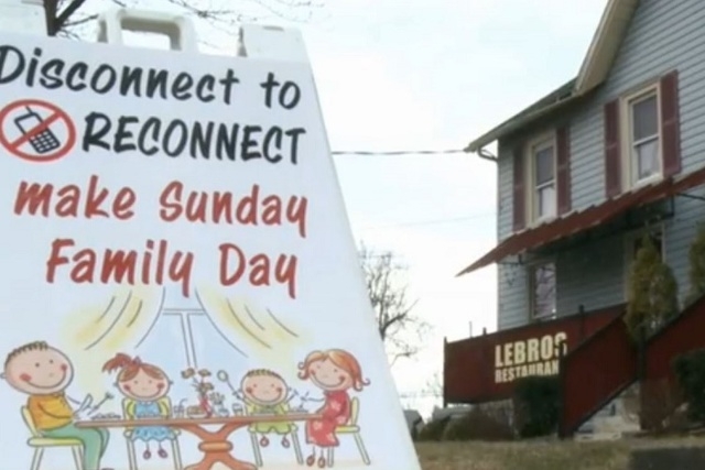 Lebro’s Restaurant, in Getzville, NY, near Buffalo, recently launched a promotion discounting bills by 10 percent when families disconnect during their meals.