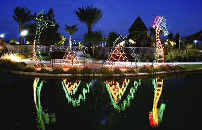 Visitors to the Winter Holiday Festival can enjoy horse-drawn carriage rides from the Aliante Information Gallery to a decorated event tent in Nature Discovery Park. Along the way, carriage riders can view the light displays, including life-sized elves with presents in front of the Aliante Information Gallery and a 40-foot-long sea serpent with a waggly tail, next to the lake in the Nature Discovery Park.