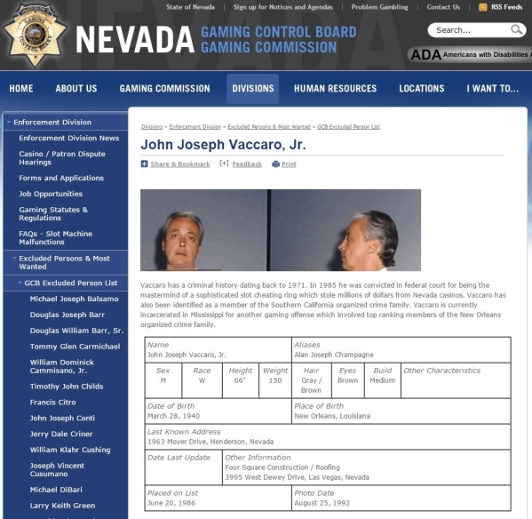 By the time of the Biloxi casino caper, a marked-card scheme, Vaccaro was well known in law enforcement circles. Where it once might have been relatively simple for Vaccaro and his associates to move from one casino to the next, improved surveillance, security and information sharing made pulling off a lengthy score virtually impossible. Those “Ocean’s 11” days were always more movie fantasy, anyway.