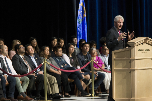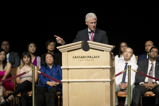 Bill Clinton defends, promotes Hillary at Las Vegas forum