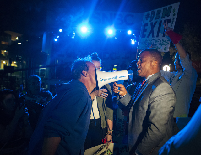 A group of about 15 Las Vegas police officers stood nearby, just in case the confrontations turned violent. Metro later said there was no major trouble.