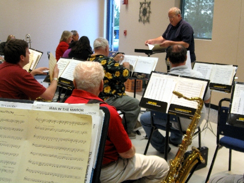 The main band is called the concert band. Its numbers fluctuate between 20 and 40, mostly due to some members being snow birds and other member s' prior commitments.