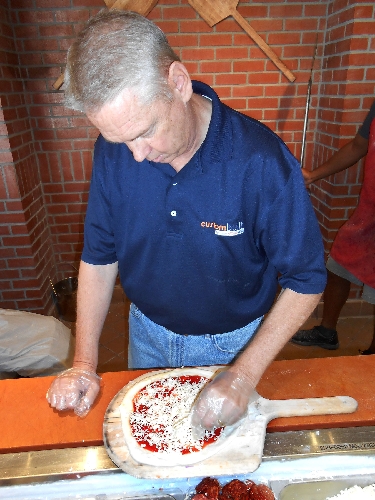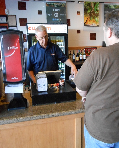 His friend, Trey Hoppel, said it was a spontaneous decision and a good one. He said the pizza was tasty and that he'd definitely return. He liked moving along the kitchen line, choosing his own toppings.