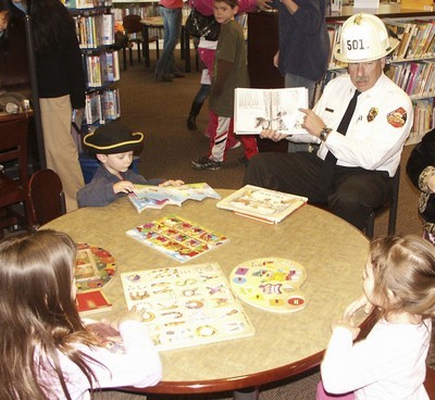 Monday afternoons at 4 p.m., Gillespie shows up at the Aliante Library dressed in uniform (including fire helmet and boots) and armed with a wide selection of popular children’s books.