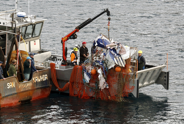 The crew of the San Kawhai was trawling for fish when they brought up the wreckage in the boat’s nets at about 10 a.m., said Trish Sherson, a spokeswoman for fishing company Sanford.