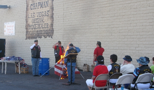 In honor of national Flag Day on June 14, approximately 50 veterans and civilians gathered to view a ceremony hosted by the American Legion Post 149 and Chapman Dodge Chrysler Jeep. The ceremony paid tribute to the American flag and respectfully retired hundreds of unserviceable flags.