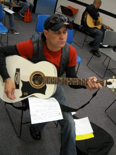 One of the students, Geoff, who didn't want his last name used, said he was there because he always had wanted to learn the guitar. He had flirted with it 30 years ago, he said, but hadn't stuck with it.