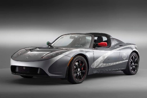 The all-electric Tesla Motors Roadster version 2.0 uses a lithium-ion battery pack to provide a range of 240 miles between charges. Its electric motor can accelerate from zero to 60 mph in less than 4 seconds with its single speed transmission, leaving the driver with a feeling of being launched forward from a slingshot while eclipsing most high-end internal combustion engine sports cars in its class. Top speed is 125 miles per hour.
