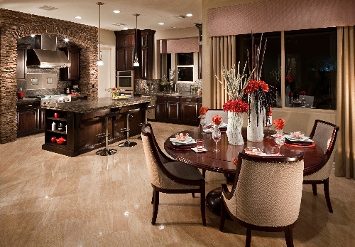 The Residence One features four bedroom, 3½ baths, a gourmet kitchen, great room, dining room as well as a dining nook, home office, and three-car garage in 3,876 square feet. Design options include a casita, wine room and covered patio. The home is priced from $425,990.