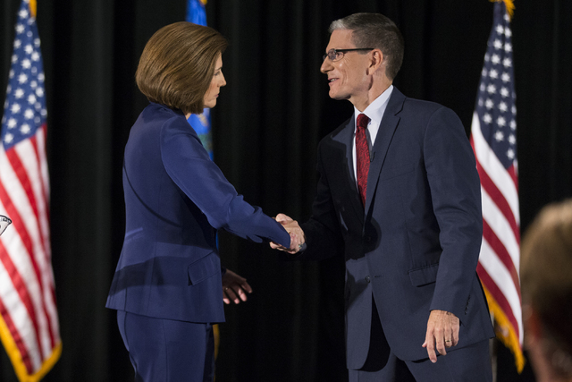 The hourlong event featured U.S. Rep. Joe Heck, R-Nev., and Democrat Catherine Cortez Masto, a former Nevada attorney general. Heck and Cortez Masto are vying for the seat of retiring U.S. Senate Minority Leader Harry Reid, D-Nev.