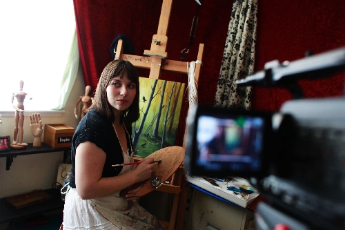 With her hands itching to draw and paint and her video camera eager to capture her in action, Lauren Nash creates two pieces of art -- one on canvas and one on her YouTube channel, Transient Art.