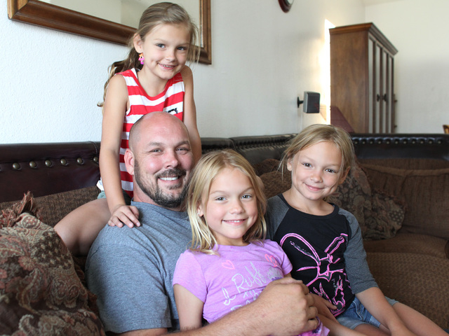 As Henderson resident Ronnie Hippert takes a seat on his couch, his daughters Gracie, 9, and 7-year-old twins Chloe and Madison, race to him like magnets, creating a dog pile of giggles and laughter across his lap.