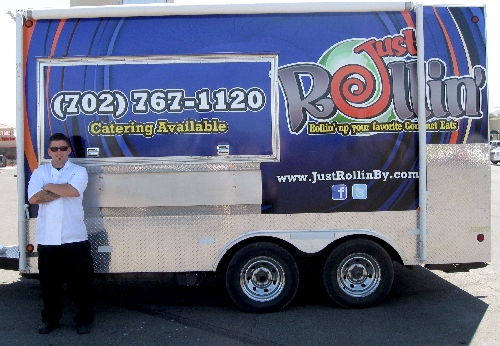 The owners of the up-and-coming food truck Just Rollin' are waiting for their business license to be finalized so their mobile business can officially open.