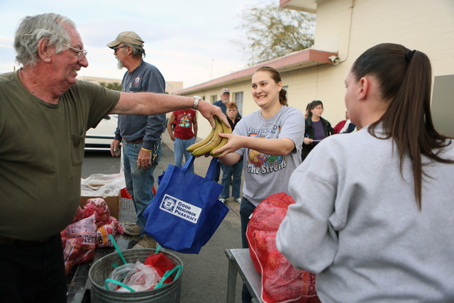 People waiting in the line at Henderson food banks might be coming for the promise of meeting their family’s needs.
