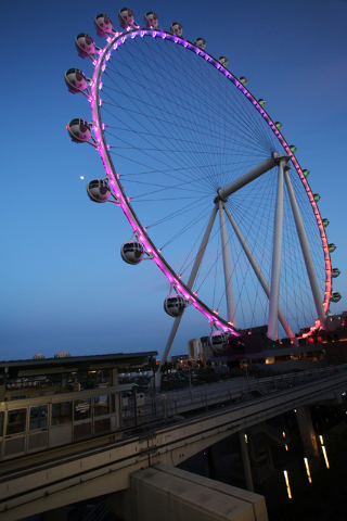 Talk about adult theater in the round. At the ride’s apogee, the glass-encased pods are hundreds of feet in the air above the Strip.