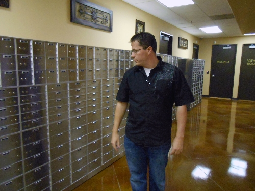 He and his family are co-owners of Total Safety Inc., a security company established in 1998. TSI had been looking for some avenues to expand and added fire safety devices such as extinguishers and automatic ceiling sprinklers to its services. The Bayne family started The Vaults as a separate entity but related service, housed within the unassuming TSI building at 9555 Del Webb Blvd.