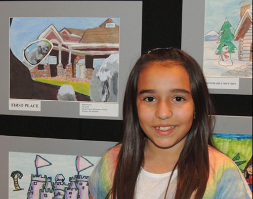 The contest's first-place award went to Angel Flores, a fifth-grade student at Treem Elementary School. Her painting showed an image of her aunt's dog looking at itself from a car's side mirror with a home in the background.