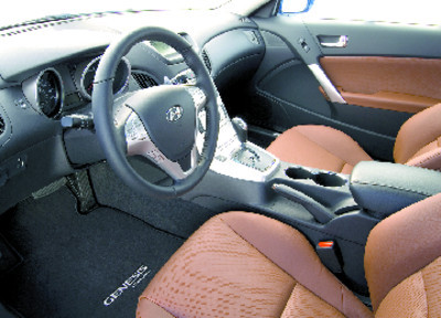 The control panel is cleanly laid-out and quick to master (a rarity in this age of excessive push-buttons and knobs) and the gauges are easy to read and are right where you need them. Unfortunately, the dashboard itself is bland and plasticky, a condition that could easily be corrected should Hyundai choose to employ the Genesis sedan's stitched leather-look dash covering.