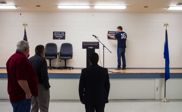 Paul banners fastened on the concrete wall proclaimed a lofty goal: "Defeat the Washington Machine." But it's one that's welcomed in Nye County.