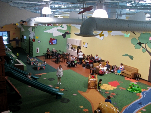 There are cafe-style tables and couches for parents to lounge on and socialize. Staffers are present to maintain operations and sanitize equipment often but it is not a day-care facility.