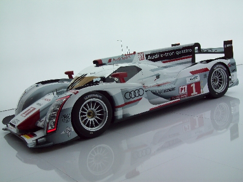 Audi AG displayed its R18 e-tron quattro hybrid diesel-electric racing platform that finished first and second during the 24 Hours of Le Mans in 2012, the first hybrid car to become the overall winner of this event in 80 years. The R18 e-tron quattro couples a diesel engine driving the rear two wheels of the vehicle with two electric motor/generators and a flywheel accumulator connected to the front wheels of the platform. Wicked fast!
