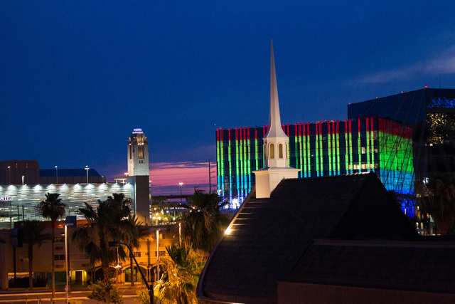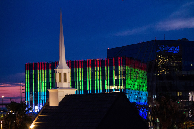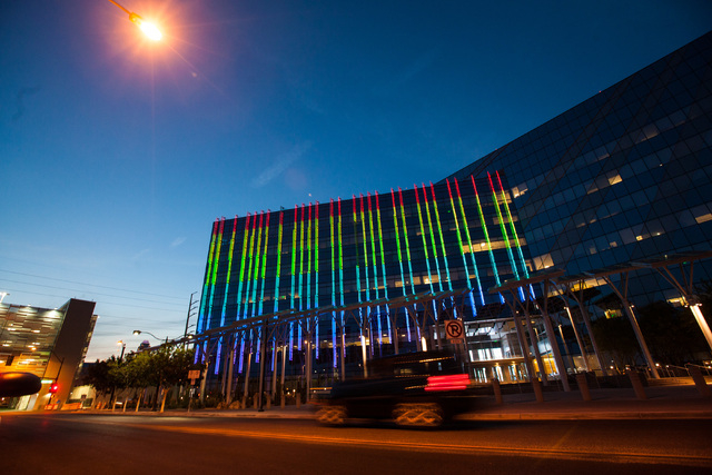 Here in Las Vegas, city hall was decorated in a similar fashion, the light bars turning into a spectrum of color.