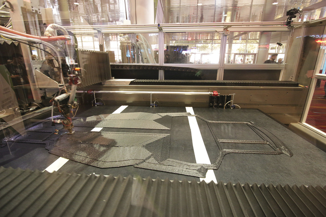 The first construction phase, fabricating the plastic and carbon fiber material components of the car body, started Nov. 4. Parts were made from scratch at the Las Vegas Convention Center. A Big Area Additive Manufacturing machine, manufactured by Cincinnati Inc., formed the components by melting and fusing rounded pellets of plastic into 212 layers of fine, stratified material over 44 hours.