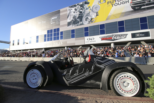 The company was in the spotlight last month during the recent Specialty Equipment Market Association trade show at Las Vegas Convention Center. The local microfactory was involved in a demonstration in which a large-format three-dimensional printer fabricated a custom-car body and a team completed the car’s assembly. The project was finished during the trade show’s four days, in time to drive it during the annual SEMA Cruise and after-party.