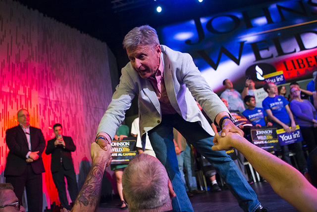 Bill Weld, Johnson’s running mate, chimed in with an assist. “I’m with Shimon Peres.”