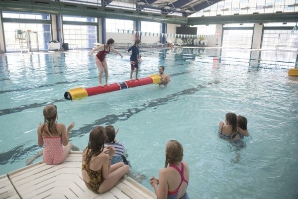Sierra Kaye, 18, the diving coach at the pool, coached the log rolling class. She said it was a good opportunity for kids to learn a sport that had never been offered in Las Vegas before. She stressed learning timing, coordination and, most important, balance.