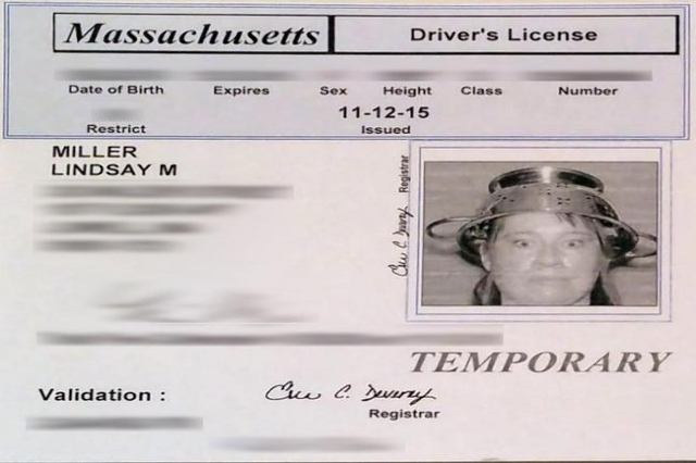 “As a member of the Church of the Flying Spaghetti Monster, I feel delighted that my Pastafarianism has been respected by the Massachusetts RMV. While I don’t think the government can involve itself in matters of religion, I do hope this decision encourages my fellow Pastafarian Atheists to come out and express themselves as I have,” the woman, Lindsay Miller, said in an American Humanist Association press release.