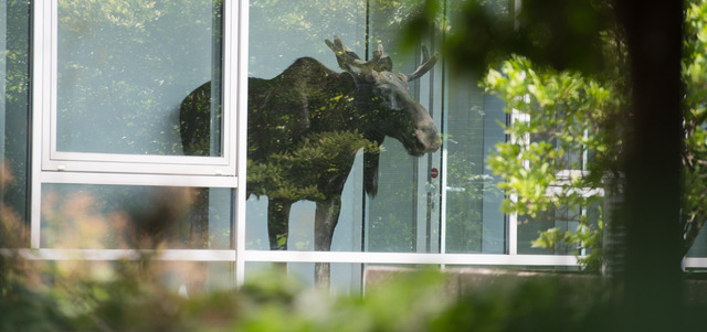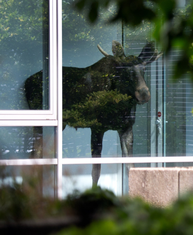 A moose on the loose in the eastern German city of Dresden evaded capture before getting stuck inside an office building, tantalizingly close to the canteen.