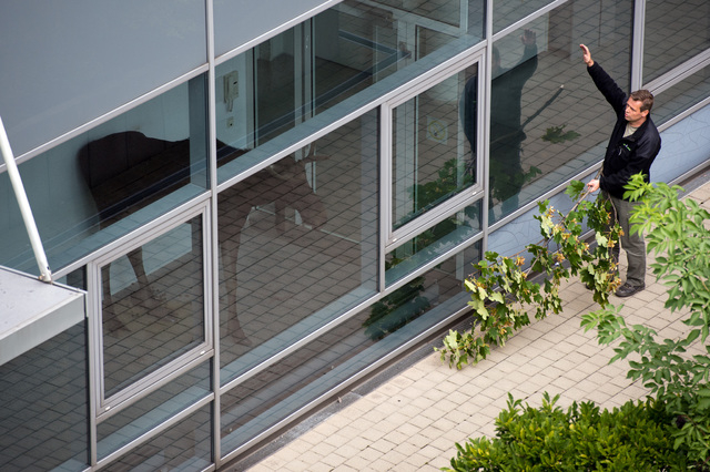 A spokesman for Dresden police says the young bull walked into the building housing German industrial giant Siemens shortly before lunchtime Monday.