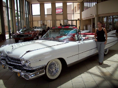 Greeting customers who venture through the front doors at the newly transformed Courtesy Auto Center in the Centennial Hills automotive corridor in northwest Las Vegas is a 1959 Cadillac DeVille Deluxe convertible.