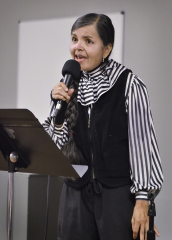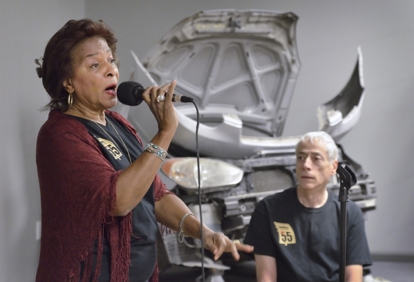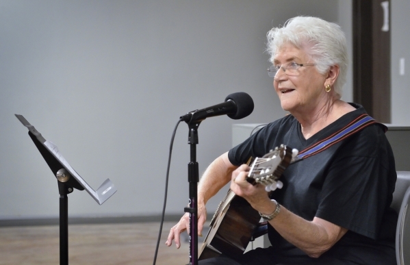 Gail Romero made subtle gestures with her hand as she sang the old pop standard "Blues in the Night" into the mic in front of other members of Speeding Theatre — Over 55.