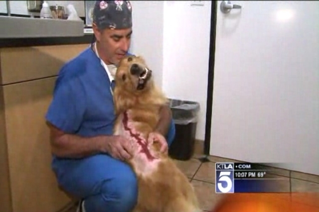 Lancaster, CA — A golden retriever who endured third degree burns after someone poured acid down his spine was only one of several dogs found tortured in a similar manner in recent weeks in the Antelope Valley.