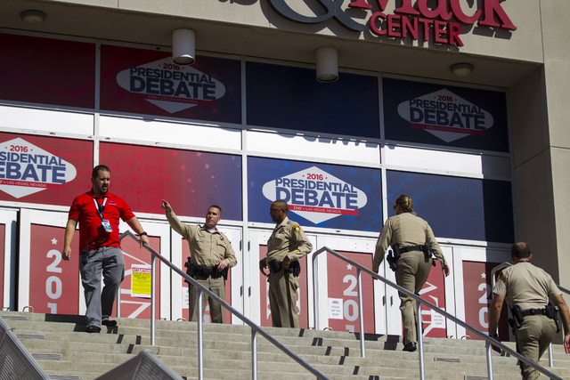 Secret Service agents will join forces with the Metropolitan Police department, UNLV police, the Nevada Highway Patrol and others to make sure the debate at the Thomas & Mack Center is safe for everyone involved. There will be restricted travel around and above the debate site, a designated area for protesters and more than a thousand boots on the ground.
