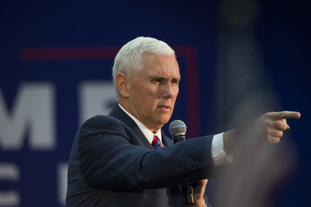 Pence was introduced by a trio of Nevada conservatives: Assemblyman Chris Edwards of Las Vegas, state GOP Chairman Michael McDonald and 3rd Congressional District candidate Danny Tarkanian.