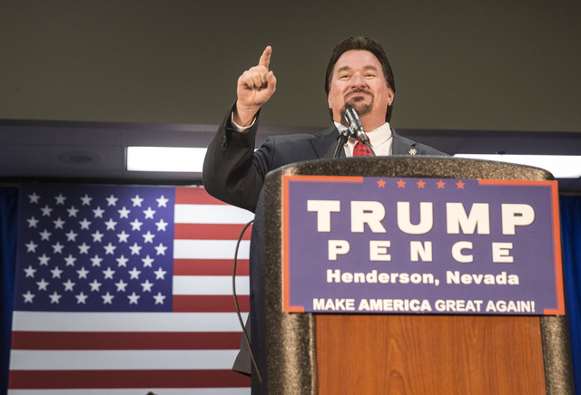 Other notable Southern Nevada Republicans were noticeably absent from the rally. U.S. Rep. Cresent Hardy, who is seeking re-election in the 4th District, was out knocking on doors for his campaign, his campaign manager said. Rep. Joe Heck, who is running to replace U.S. Sen. Harry Reid, the Senate minority leader who is retiring, was in Reno.