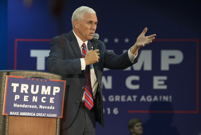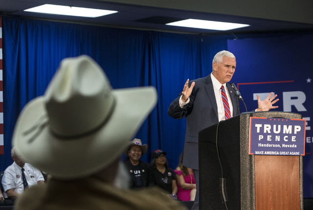 It was the third rally in Nevada for Pence this month — he also spoke in Reno and Carson City — but it proved much tamer than his Carson visit on Aug. 1.