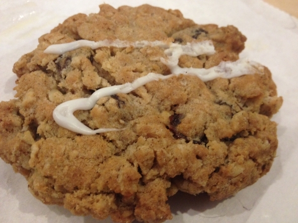 On a recent visit, Churro cookies, Peanut Butter Chocolate Chip cookies, Oatmeal Raisin, Pumpkin Spice Latte, Gingerbread Men cookies and The Chipster cookie, made with chocolate chips and topped with a single potato chip, were available. Cookies (60 cents each and 80 cents for specialty kinds) are soft but still include a slight crunch.